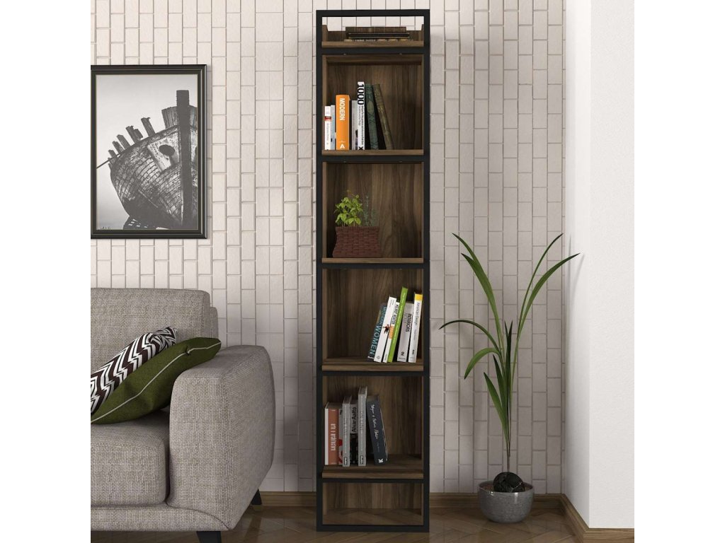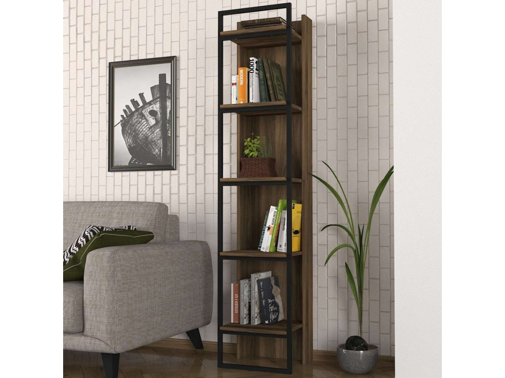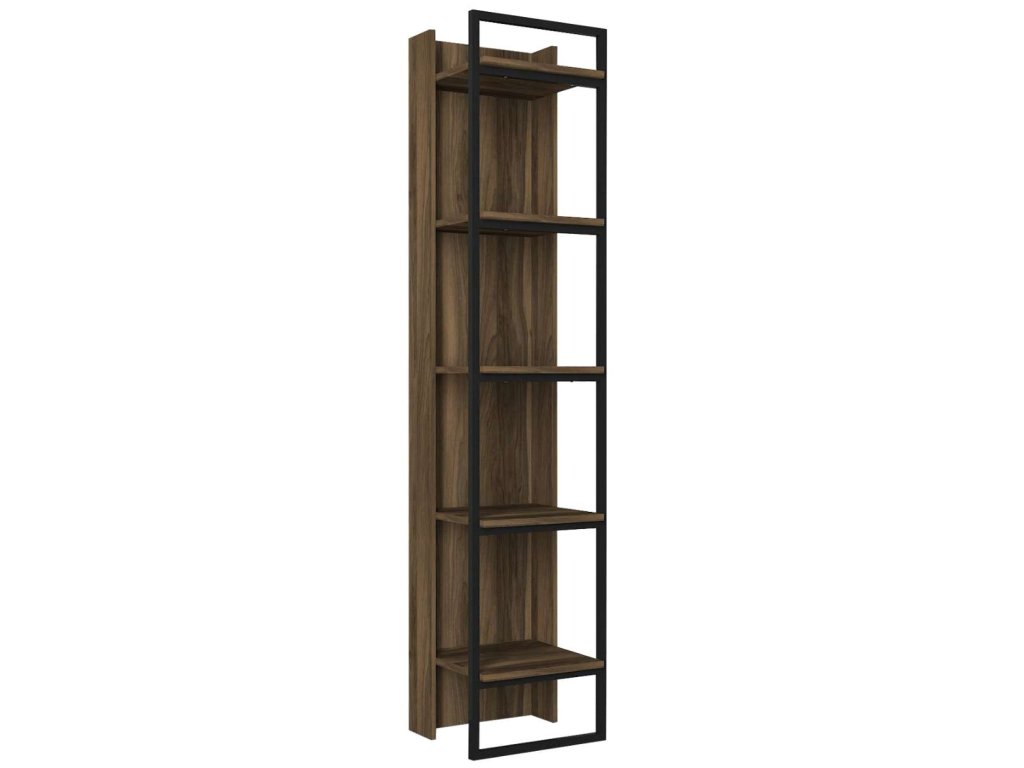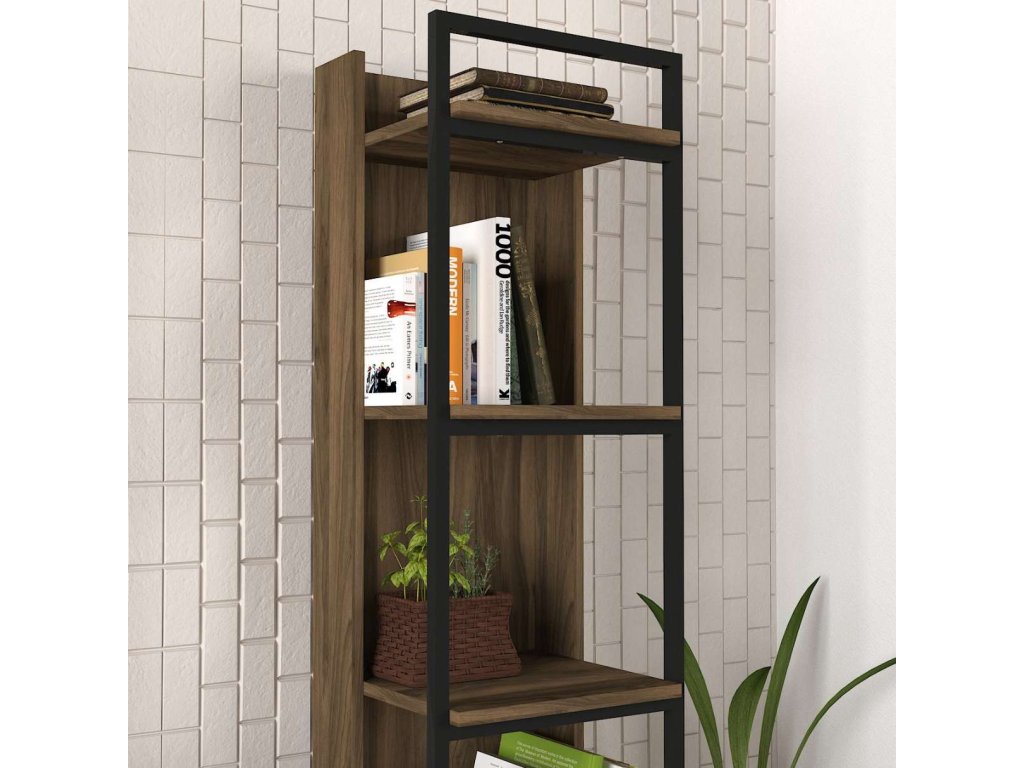 Regál ALVIN vyniká svojim moderným dizajnom a praktickým usporiadaním, ktoré je ideálne na skladovanie kníh, dekorácií alebo kancelárskych potrieb. Štyri pevné police poskytujú dostatok úložného priestoru a kombinácia LTD materiálu s hrúbkou 18 mm a kovu zaisťuje dlhú životnosť a stabilitu tohto regálu.
