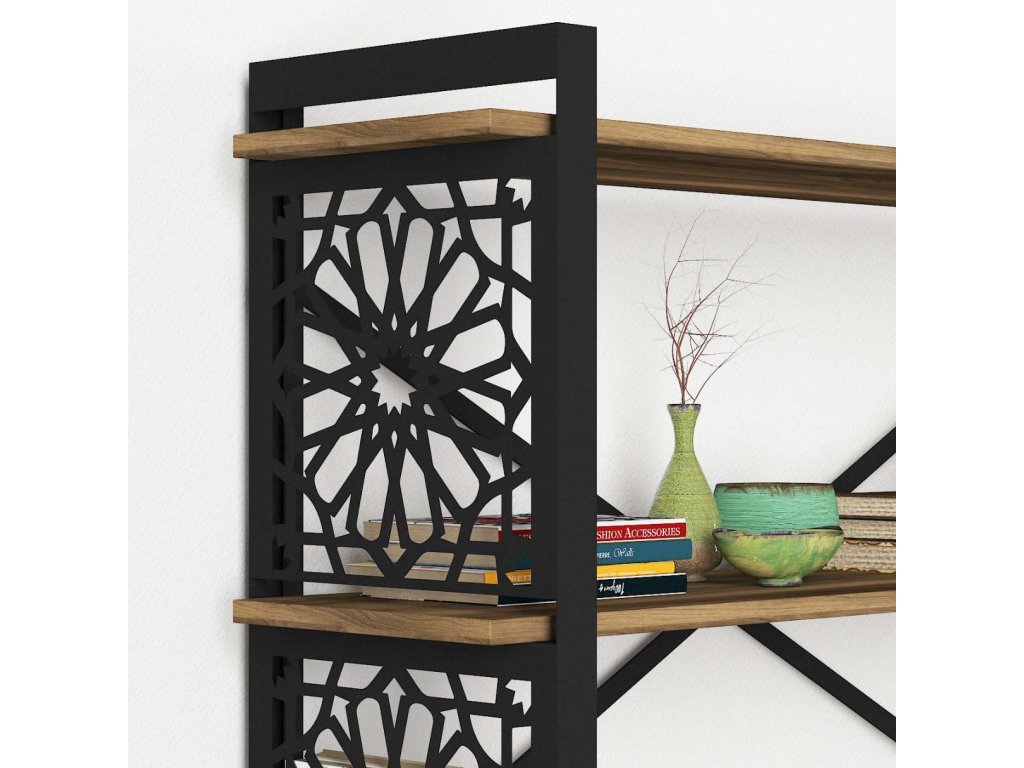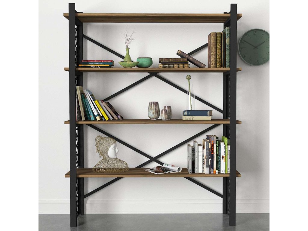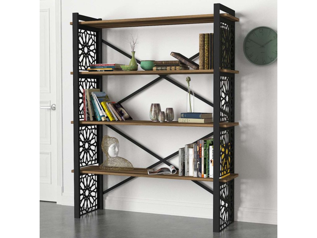 Regál EMIR vyniká svojim moderným a praktickým dizajnom, ktorý sa skvele hodí do akéhokoľvek interiéru. Štyri pevné police poskytujú dostatok úložného priestoru pre vaše knihy, dekorácie či kancelárske potreby. Kombinácia LTD materiálu s hrúbkou 18 mm a kovu zaisťuje dlhú životnosť a stabilitu tohto regálu.