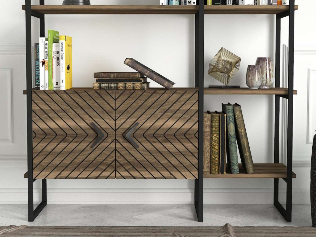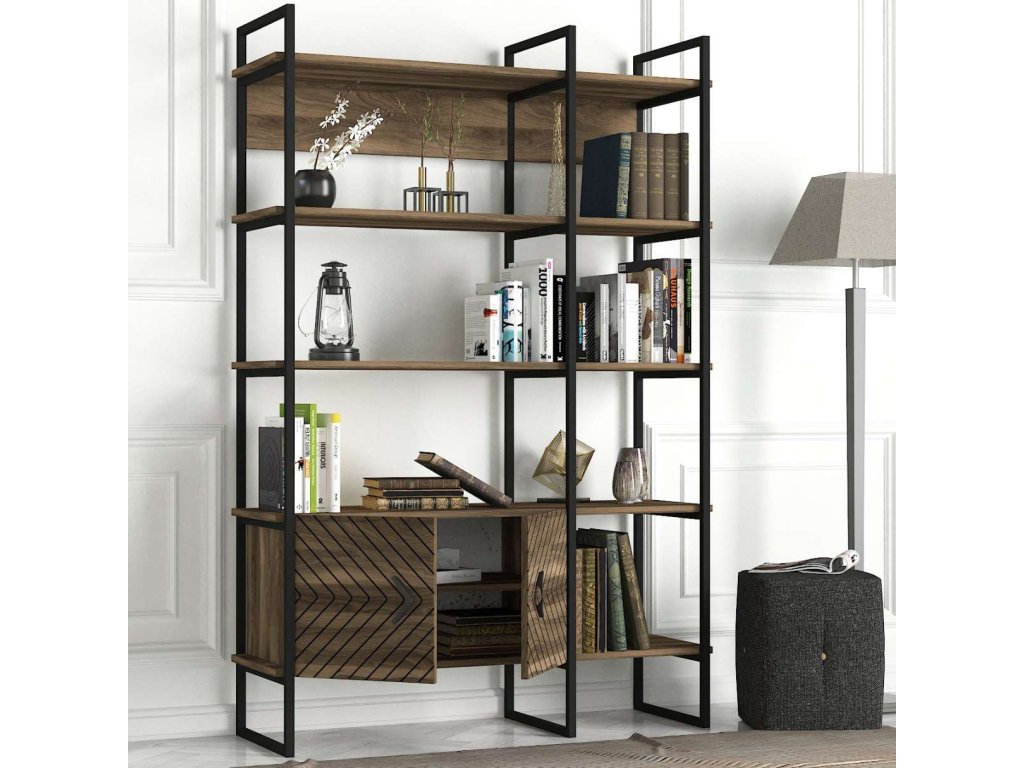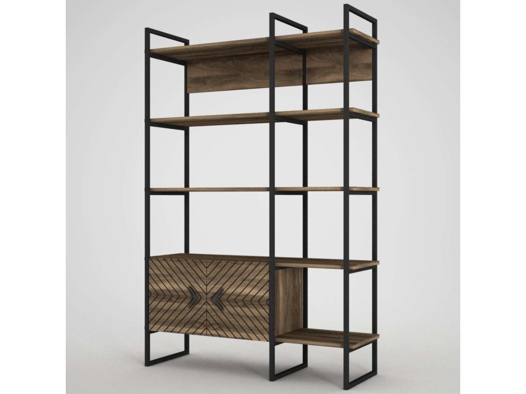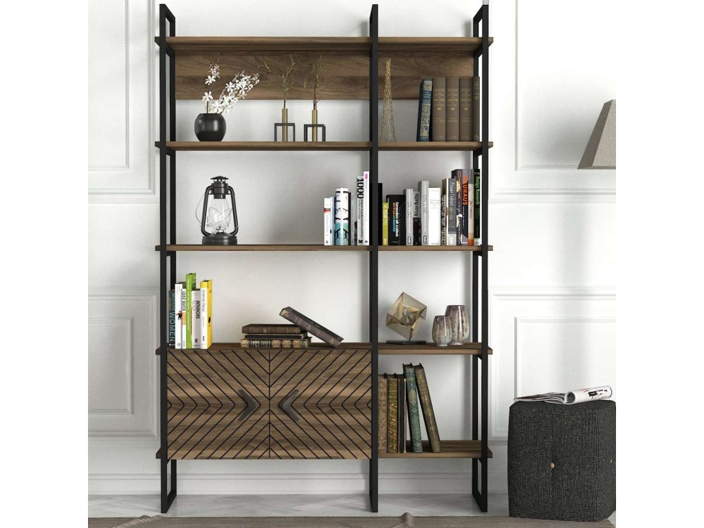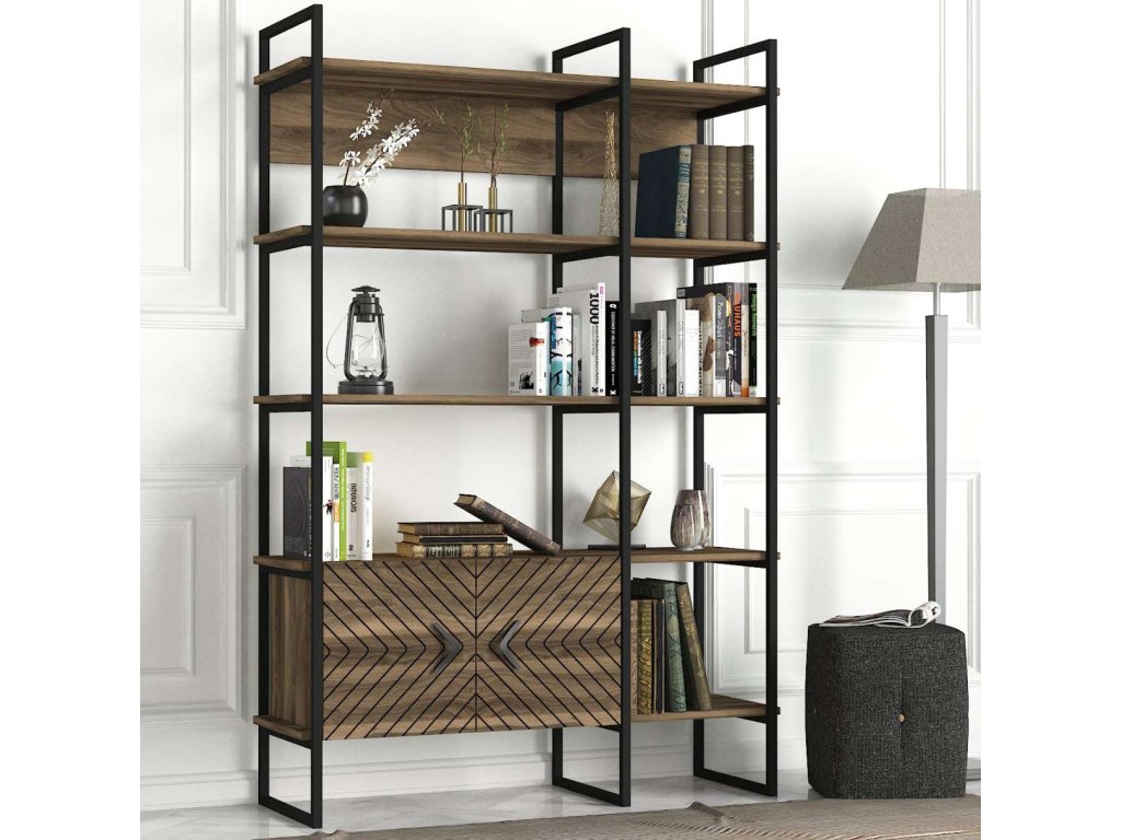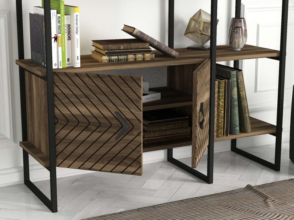 Regál SANTAFE sa pýši svojim vysokým dizajnom a kombináciou orechového dreva a kovu, ktorý prináša do interiéru moderný industriálny štýl. Štyri pevné police a skrinka poskytujú dostatok úložného priestoru pre vaše knihy, dekorácie či kancelárske potreby. Robustný LTD materiál s hrúbkou 18 mm zaisťuje dlhú životnosť a stabilitu tohto regálu.