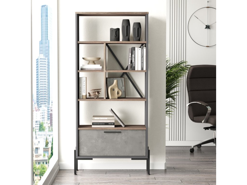 Prineste modernú atmosféru do svojej pracovnej miestnosti alebo kancelárie s naším najnovším prírastkom, regálom a knižnicou VISTA 4. S jeho loftovým a industriálnym štýlom, toto úchvatné nábytkové riešenie ponúka ideálnu kombináciu estetiky a funkčnosti. Unikátny dekor z betónu a bohaté farebné tóny dopĺňajú jeho robustnú konštrukciu, vytvárajúc tak skutočný vizuálny zážitok.