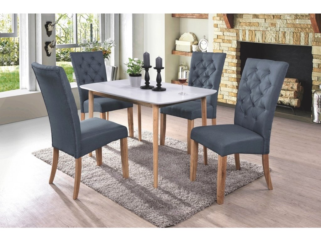 Jedálenská stolička ATENA je čalúnená kvalitným látkovým poťahom a vyplnená PUR penou pre pohodlné sedenie. Farebné prevedenie: šedá + dub natural = nohy.