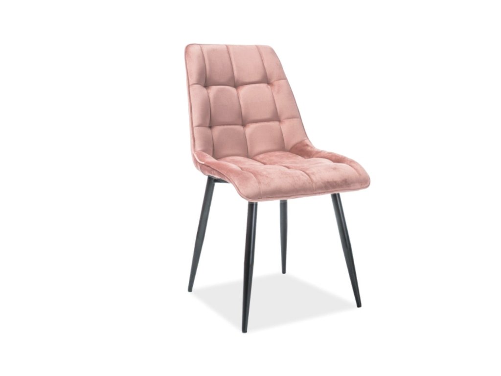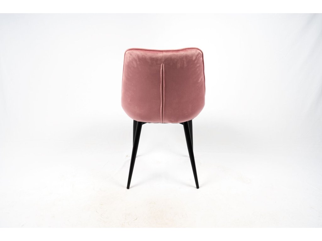Stolička má kovové nohy. Sú v čiernom farebnom prevedení. Čalúnené časti sú potiahnuté kvalitnou zamatovou látkou vo farebnom prevedení antická ružová. Prešívanie na opierke vytvára štýlový vzor.