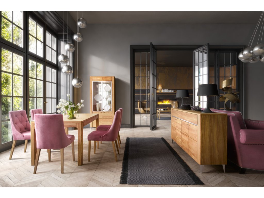 | Zostava obsahuje: | Jedálenský stôl: 160/205/250 x 76 x 90, komoda: 180 x 91 x 42, vitrína: 90 x 200 x 42 cm. |