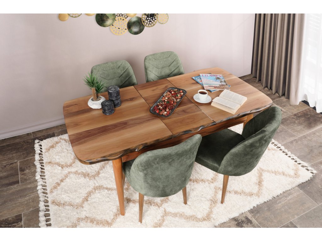 Vďaka jedinečnej kombinácii farby orecha a tmavo zelenej farby naša sada stoličiek bez námahy zachytáva podstatu bohémstva. Bohaté tóny a zložité vzory vytvárajú vizuálne ohromujúci kus nábytku, ktorý sa stane ústredným bodom každej miestnosti. Prijmite bohémsky životný štýl a nechajte svoj priestor odrážať vašu slobodomyseľnú povahu.