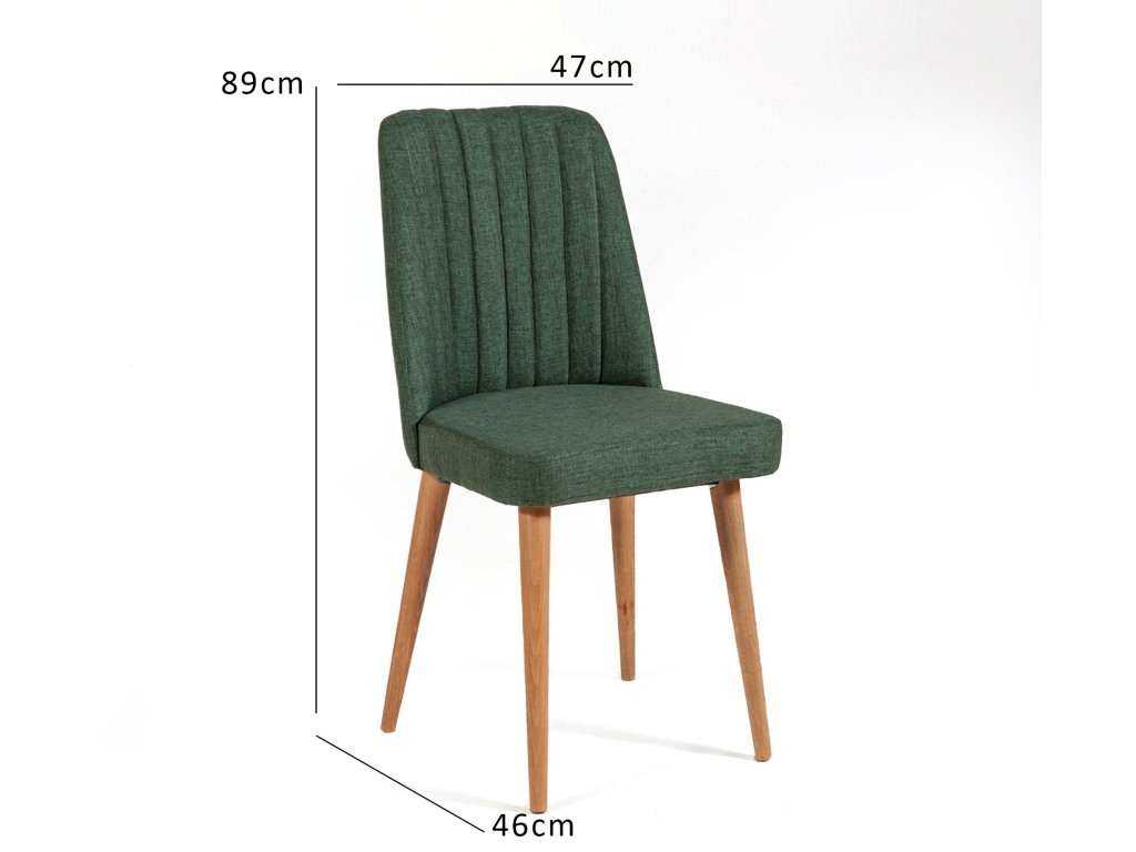 Stolička má nohy z dreva, čo dodáva jej modernému dizajnu prírodné a rustikálne kúzlo. Farebná kombinácia atlantskej borovice a zelenej vyžaruje pocit pokoja a harmónie, čo z nej robí perfektný doplnok do akéhokoľvek moderného alebo škandinávsky inšpirovaného interiéru. povlakom