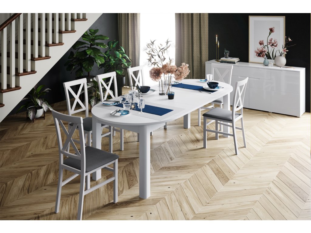 Jedálenský stôl ANDY je v atraktívnom a elegantnom prevedení. Je výborným riešením do moderných interiérov. Vrchná doska je vyrobená z kvalitnej LTD dosky. Nohy stola sú vyrobené z MDF dosky. Farebné prevedenie je v žiadanej bielej farbe. Stôl je rozkladací. Je možné ho rozložiť do troch veľkostí. Z dizajnového okrúleho stola si tak vytvoríte dlhý oválny stôl. Môžete ho predĺžiť o 45, 90 a 135 cm. Rozmery stola (š,v,h):105/150/195/240 x 76 x 105 cm. Je v ponuke aj vo farbe dub sonoma. Z našej ponuky si môžete vybrať rôzne jedálenské stoličky, vďaka ktorým si vytvoríte jedáleň podľa vašich predstáv. Dodávame v demontovanom stave.Dodatočné parametre