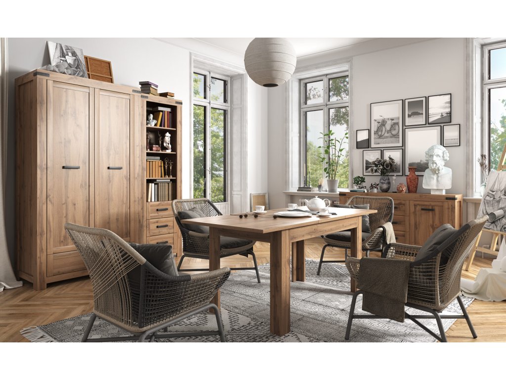 Zariaďte si obývaciu izbu, spálňu, jedáleň či predsieň moderným sektorovým nábytkom MARIETTA. Tento designovo prepracovaný systém v odtieni dub Wotan prináša teplý prírodný vzhľad, ktorý vytvorí útulnú atmosféru v každej miestnosti. dlhú životnosť a jednoduchú údržbu