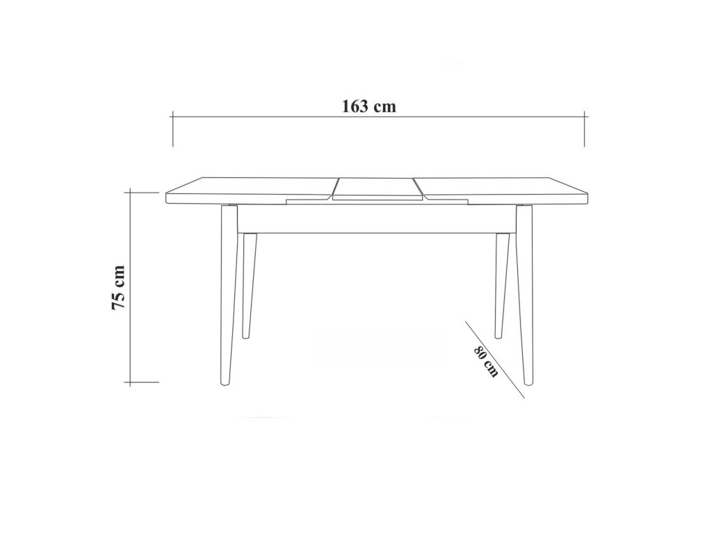 - Rozmery otvoreného stola: Šírka: 163 cm, Výška: 75 cm, Hĺbka: 80 cm