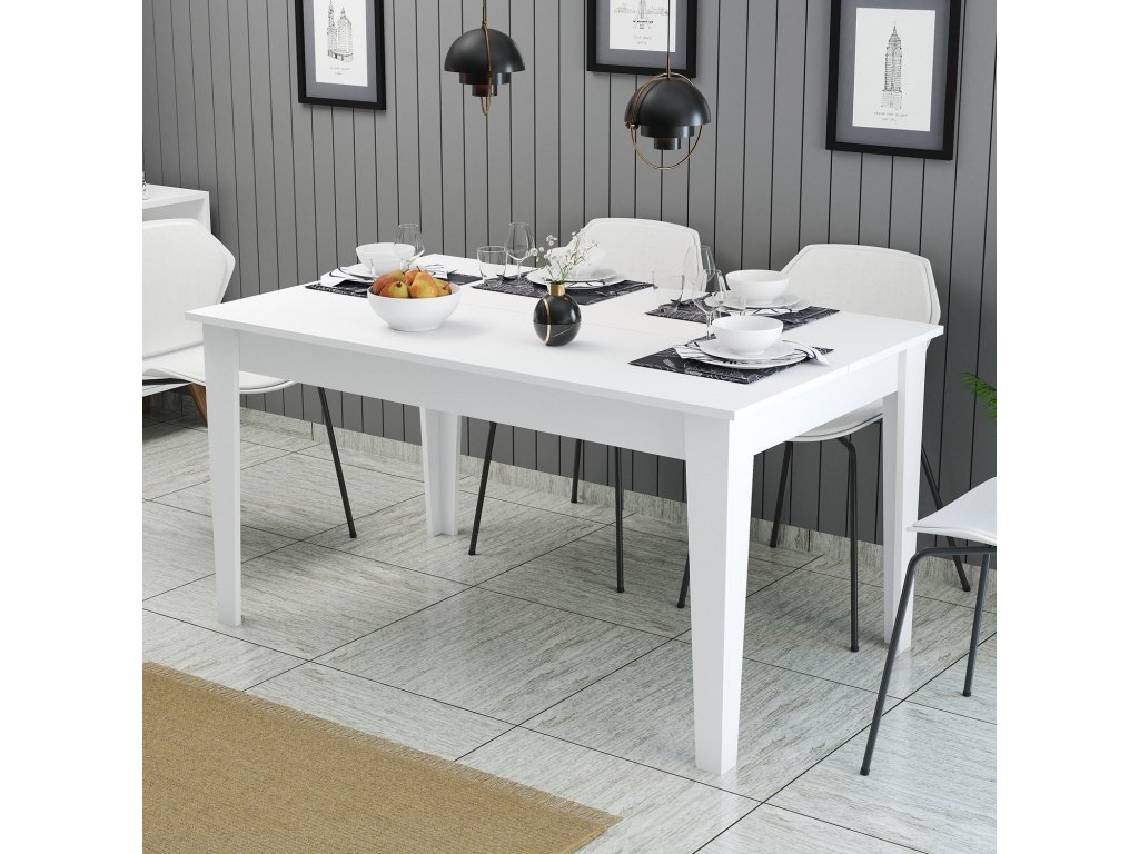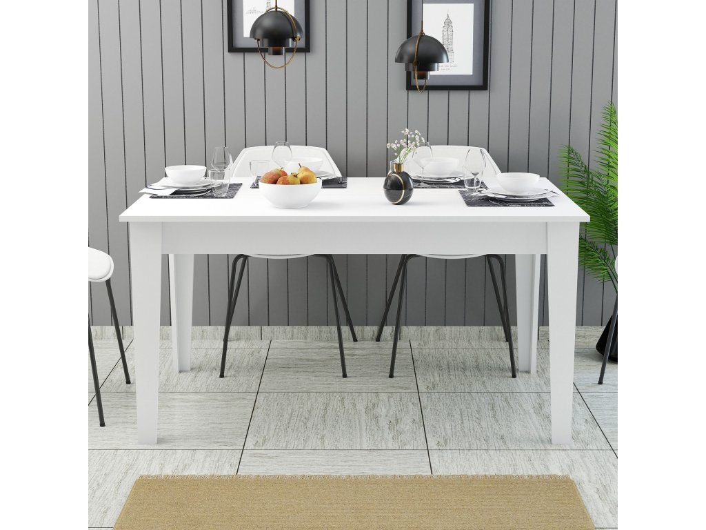 Náš jedálenský stôl s moderným a originálnym konceptom sa bez námahy začlení do akéhokoľvek interiéru a dodá vášmu priestoru nádych sofistikovanosti. Elegantná biela farba dodáva pocit čistoty a elegancie, vďaka čomu sa stane perfektným ústredným bodom vašej jedálne.