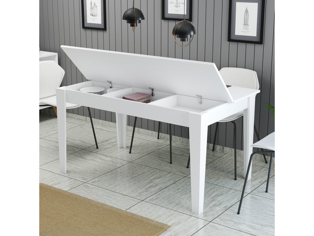 Jedálenský stôl s úložným priestorom CART, biela