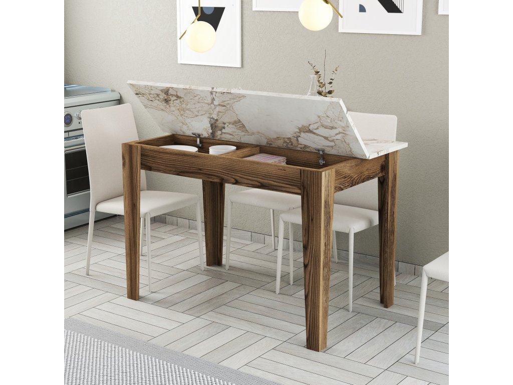 Jedálenský stôl s úložným priestorom TEAM, biela/ orech