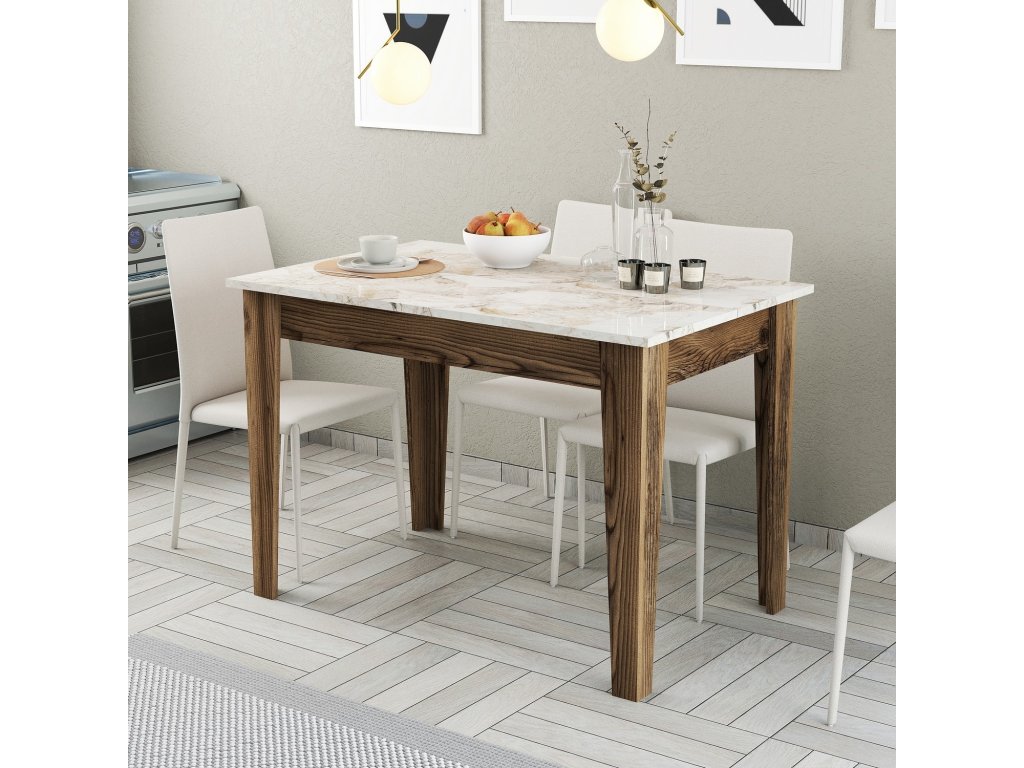 Náš kuchynský stôl je vyrobený zo 100% drevotriesky s melamínovým povlakom a je nielen vizuálne príťažlivý, ale aj skonštruovaný tak, aby odolal skúške času. Hrúbka 18 mm zaisťuje odolnosť a stabilitu, takže je ideálna na každodenné použitie.