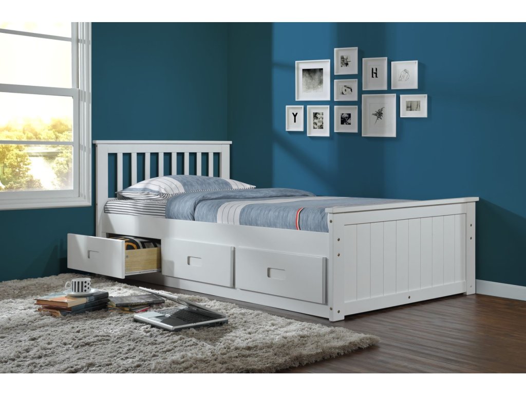 Naša jednolôžková posteľ LEMOS je vyrobená vo veľmi vysokom štandarde, vyrobená z masívneho dreva najvyššej kvality. Drevo je hladké a biely povrch je nepriehľadný, nie je vidieť kresbu dreva. Zásuvky môžete namontovať na obe strany, čo vám dáva možnosť umiestniť posteľ blízko akejkoľvek steny. V zadnej časti zásuviek je priestor, ak by ste chceli umiestniť ďalšie predmety, ku ktorým často nemáte prístup.
