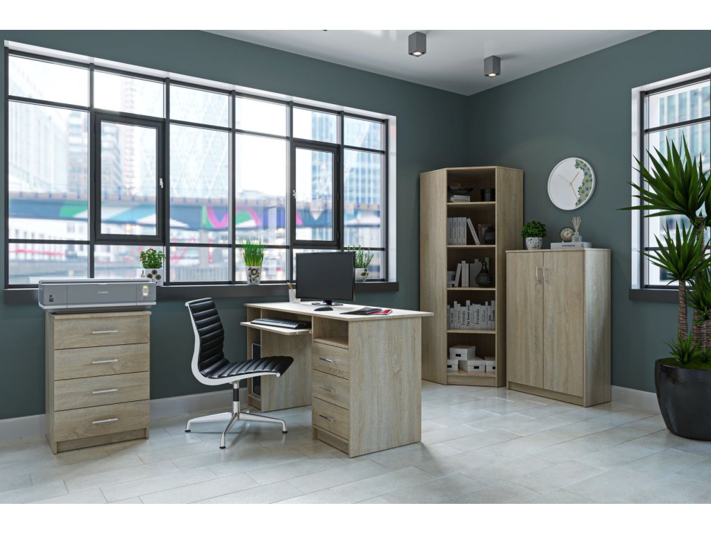 Praktická kancelárska zostava MADAL Vám pomôže zariadiť Vašu kanceláriu profesionálne a za skutočne veľmi priaznivú cenu. Farebné prevedenie dub sonoma. Nábytok je vyrobený z kvalitnej LTD dosky, ktorá je jednoduchá na udržiavanie.