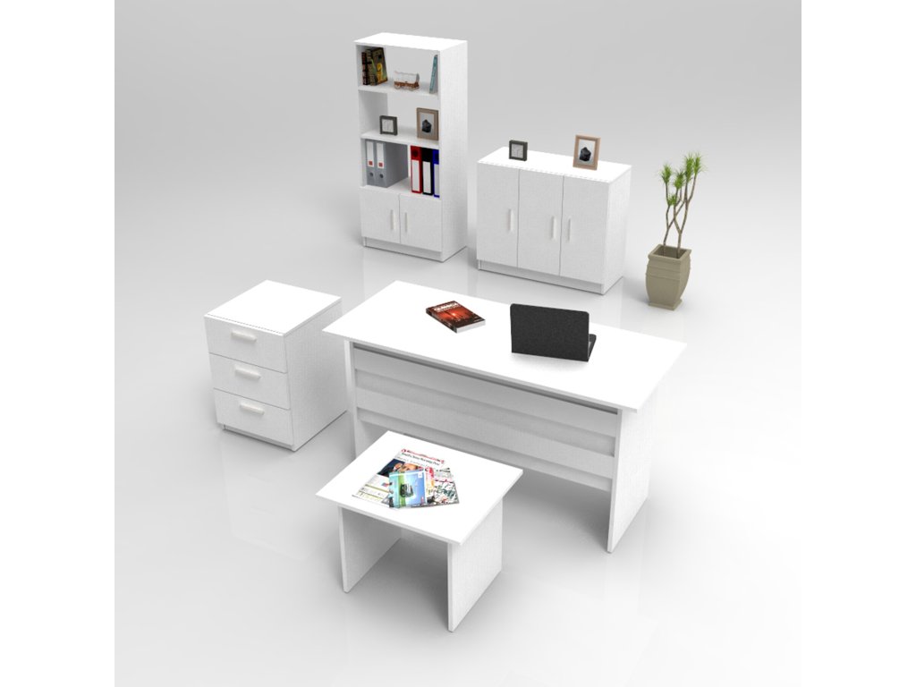 VARIO 14 poskytuje všetko, čo potrebujete na profesionálnu a efektívnu prácu. Písací stôl ponúka dostatok priestoru pre každodenné úlohy, konferenčný stolík je praktický na jednanie alebo odkladanie materiálov, malá a veľká komoda poskytujú úložné miesto pre dokumenty a pracovné potreby a regál je ideálny pre organizáciu kníh, šanónov alebo dekorácií.