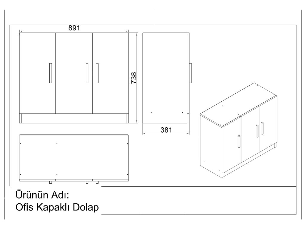 - Stredná komoda: 89,1 x 38,1 x 73,8 cm