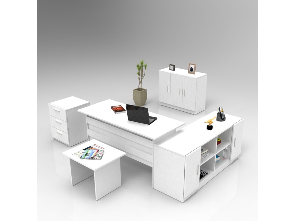 VARIO 16 ponúka kombináciu štýlu, funkčnosti a dostatku úložného priestoru. Písací stôl poskytuje pohodlné pracovné miesto, konferenčný stolík je ideálny na jednanie alebo odkladanie dokumentov. Tri rôzne komody ponúkajú variabilné úložné riešenie pre šanóny, dokumenty a ďalšie potreby, čo zaisťuje prehľadnosť a organizáciu vašej pracovne.