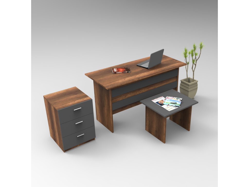 | Zostava obsahuje: | písací stôl 140x60x73, 8cm, konferenčný stolík 60x50x46, 3cm, malá komoda 44,5x46,6x61.8cm |