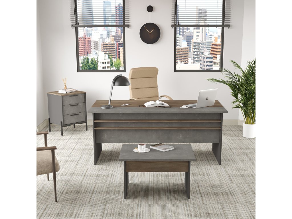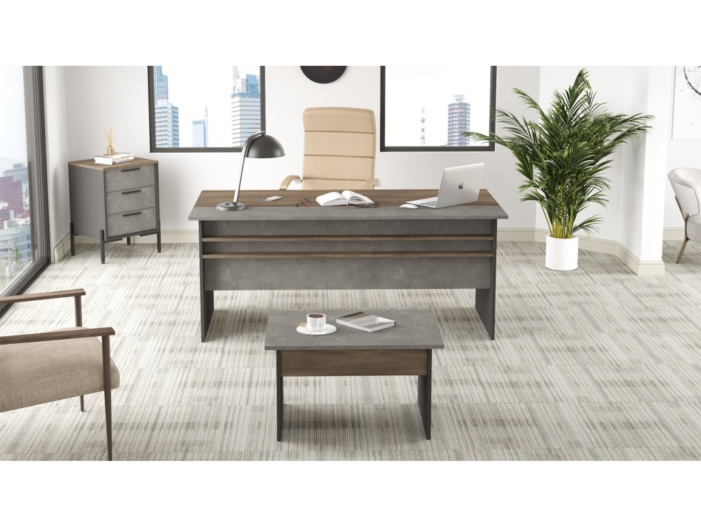VISTA 7 kombinuje praktickosť a elegantný dizajn. Priestranný písací stôl poskytuje dostatok miesta na prácu, konferenčný stolík je ideálny na jednanie, odkladanie dokumentov alebo relaxáciu. Malá komoda ponúka ďalší úložný priestor pre kancelárske potreby a pomáha udržovať pracovný priestor prehľadný. Táto zostava je perfektnou voľbou pre moderné pracovné prostredie.