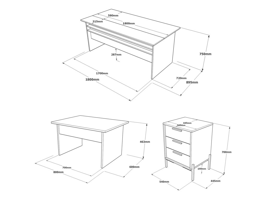 | Zostava obsahuje: | písací stôl 180x89, 5x75cm, konferenčný stolík 80x60x46, 3cm, malá komoda 54x44, 5x70cm |