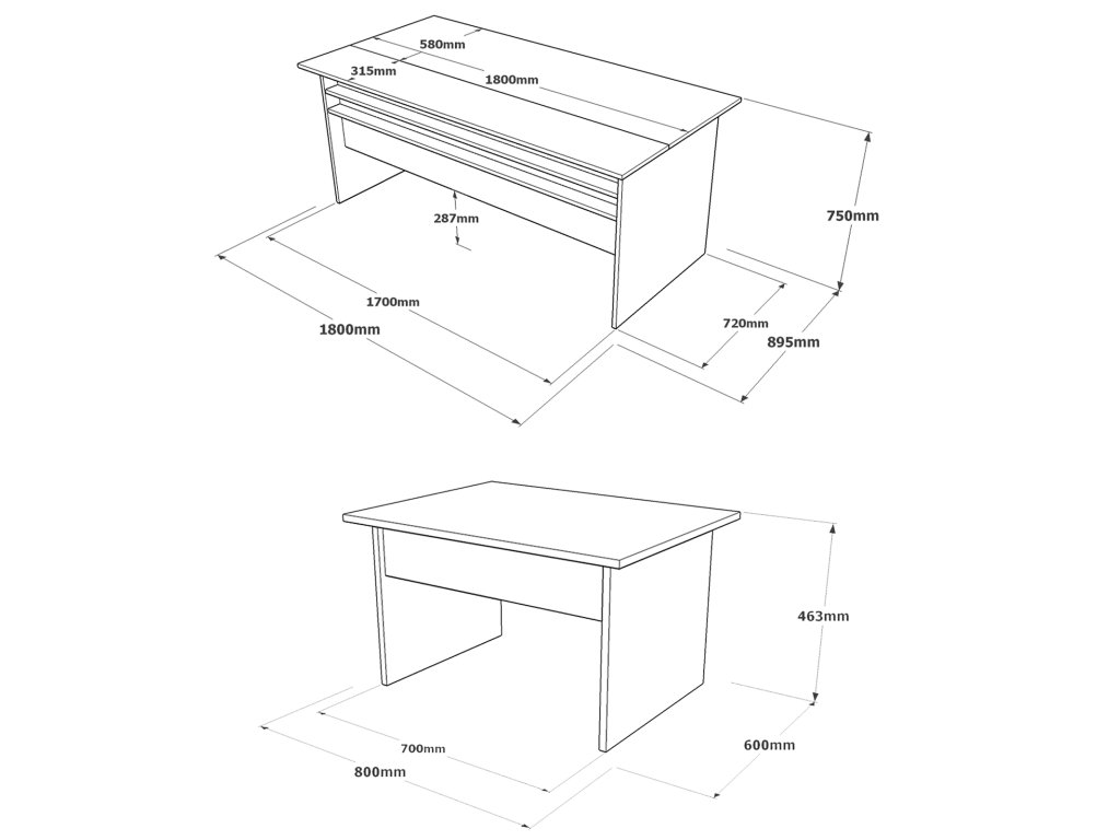 | Zostava obsahuje: | písací stôl 180x89, 5x75cm, konferenčný stolík 80x60x46, 3cm |