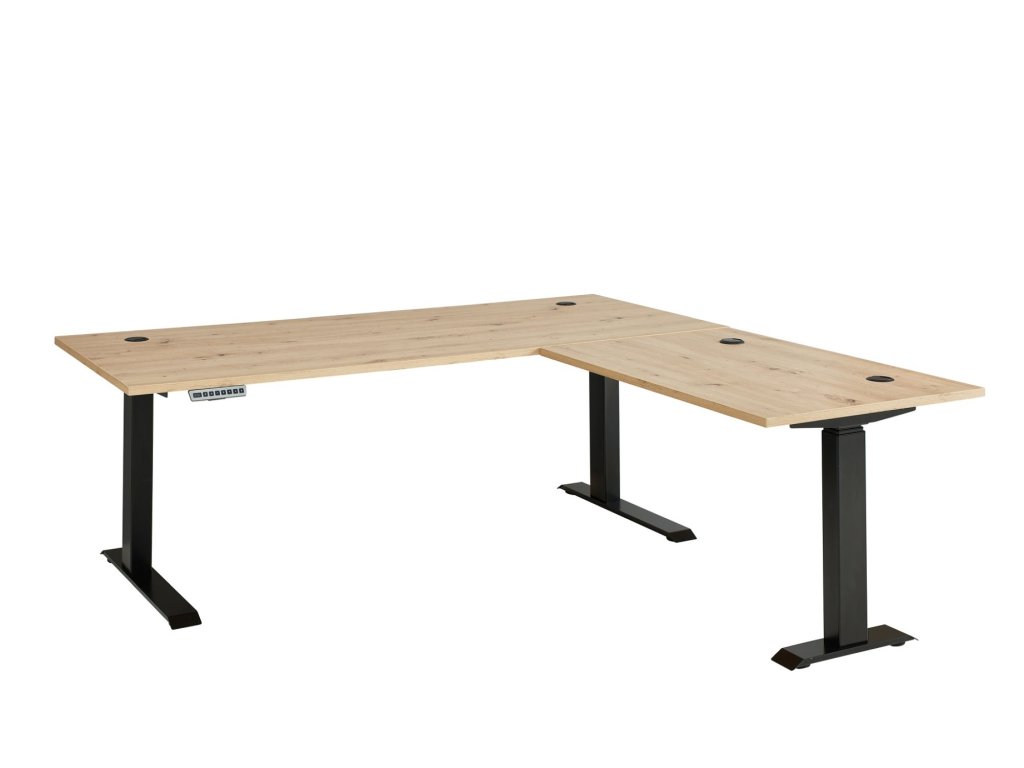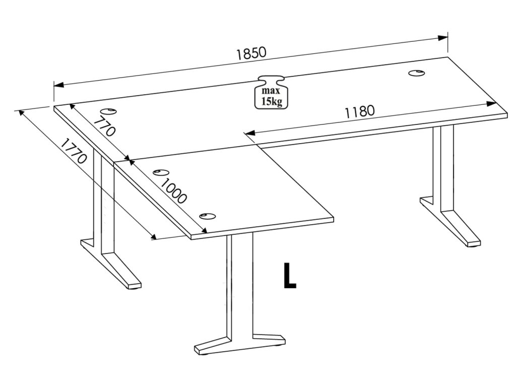 Kancelárstky stôl je rohový. Stôl je výškovo nastaviteľný.