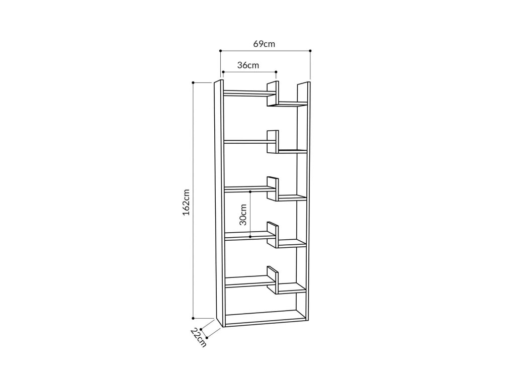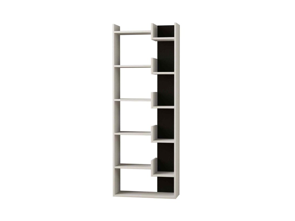Zažite kombináciu čistoty bielej a hĺbky antracitovej s regálom DIEGO. S piatimi priestrannými policami tento regál ponúka ideálny priestor pre vaše knihy, dekorácie a ďalšie predmety.