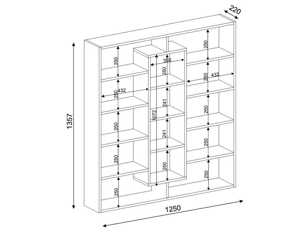 Moderná knižnica SAMPLE Vas zaujme svojimi čistými líniami, ktoré sú ideálne do moderných interiérov. Množstvo úložného priestoru, ktorý je členený do množstva dielov poskytuje ideálne miesto na uloženie kníh, ale aj dekorácií či kvetov. Štýlové farebné prevedenie v kombinácii dvoch farieb podčiarkuje jeho moderný dizajn. Regál je možné umiestniť k stene alebo voľne do miestnosti, čím vznikne zaujímavé členenie priestoru. demontu.