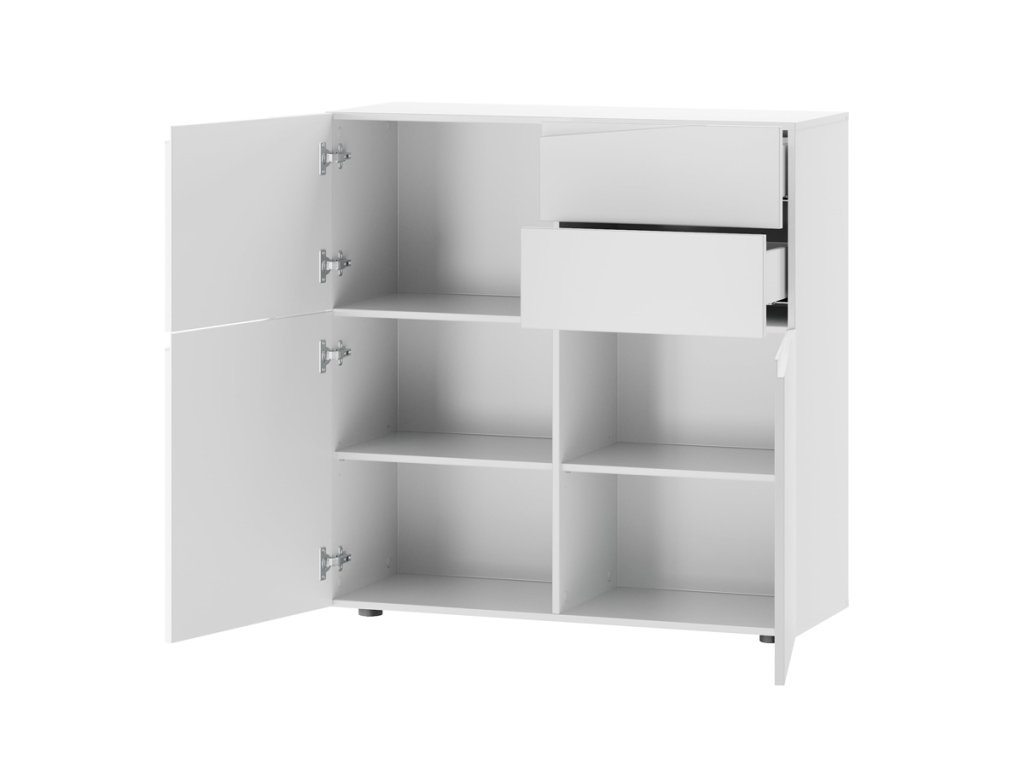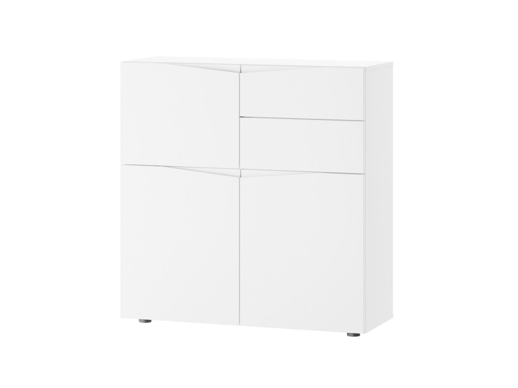 Komoda STAND je jedným z prvkov atraktívneho nábytku STAND. Zaujme vás svojim dizajnom a funčknosťou. Je vyrobená z MDF dosiek. Tie sú pokryté matnou fóliou v modernej bielej farbe. Komoda je trojdverová. Vo vnútri nachádzajú dve police. Disponuje tiež dvomi praktickými zásuvkami. Komoda je bez úchytov. Rozmery (š,v,h): 100 x 103 x 38 cm. Nábytok STAND je v modernom a minimalistickom prevedení. Vďaka svojej univerzálnosti ho môžete použiť do rôznych miestností vášho domu. Výborne sa hodí do predsiene, obývačky alebo jedálne. Záleží len na vás a vašej fantázii, kde tento nábytok použijete. Jasné farby nábytku STAND rozsvietia a zútulnia interiér. Vďaka nemu sa budete cítiť u vás doma výborne. Dodávame v demontovanom stave. Záruka 24 mesiacov.Dodatočné parametre