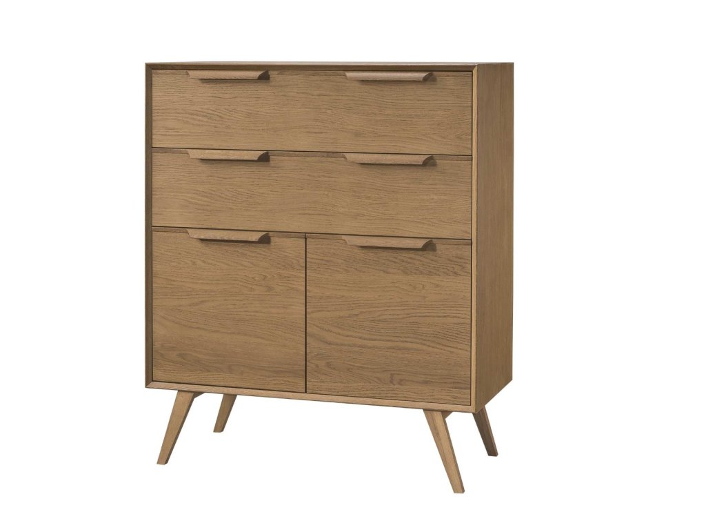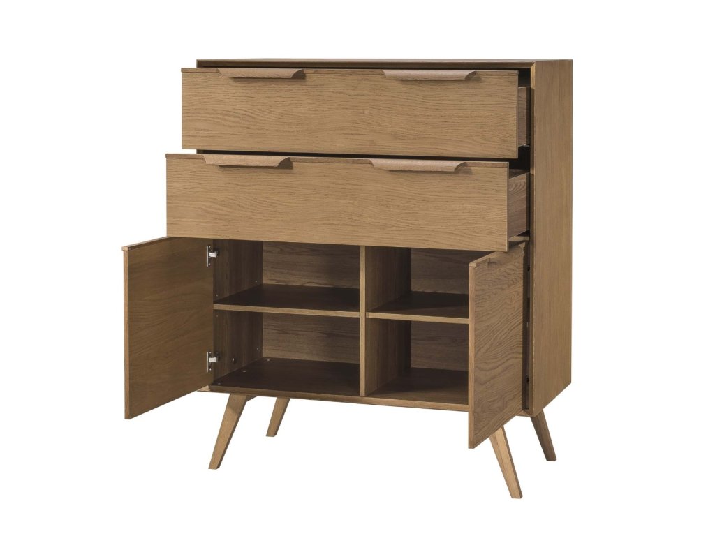 Komoda je dvojdverová. Vo vrchnej časti sú dve praktické zásuvky. Farebné prevedenie: dub Rustikálny.