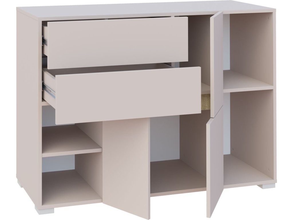 Praktická široká komoda MAURO je ideálnym doplnkom do detskej alebo študentskej izby. Komoda obsahuje praktické otvorené police, troje dvierka a 2 zásuvky. Vo vnútri sa nachádza 1 polica, ktorá poskytuje dostatok priestoru na oblečenie, hračky či školské potreby. Komoda je vyrobená z kvalitnej LTD dosky hrúbky 16 mm a zaujme moderným prevedením kašmír s detailmi v dekore dub Sonoma.