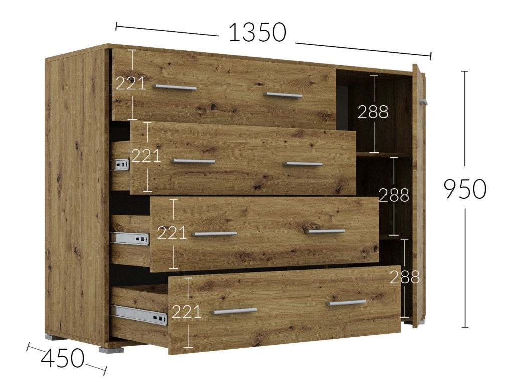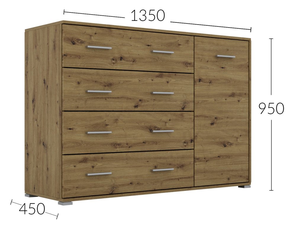 Rozmery komody: Š135 / V95 / H45 cm. Podrobné rozmery v nákrese.
