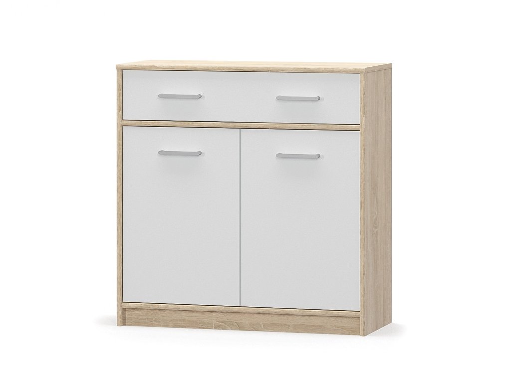Komoda OLINO je výbornou voľbou pre Vašu obývaciu či detskú izbu. Vyrobená je z kvalitnej LTD dosky vo farebnom prevedení dub Sonoma/biela matná, ktoré sa hodia do akéhokoľvek interiéru.