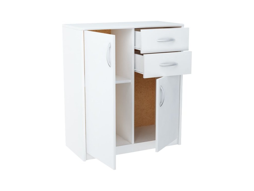 Dvojdverová komoda ANES s vnútornou policou a dvomi zásuvkami, je vyrobená z kvalitnej LTD dosky. Korpus skrinky a takisto dvierka sú v obľúbenom farebnom prevedení biela. K dispozícií máte ďalších 5 farebných prevedení na výber. Pojazdy v zásuvkách sú kovové s plastovými koliečkami. Úchytky sú z plastu vo farbe alumínium oblého tvaru. Dodávame v demontovanom stave.
