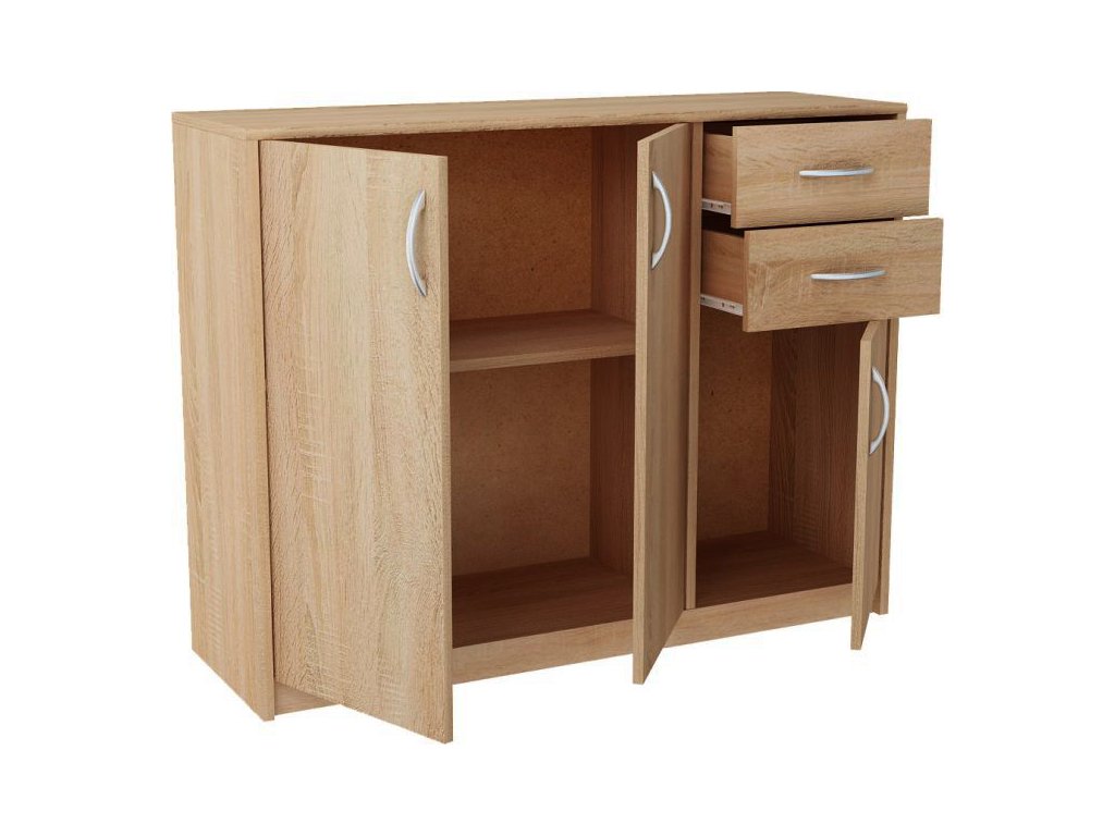 Trojdvierková komoda ANES s dvomi zásuvkami, je vyrobená z kvalitnej LTD dosky. Korpus komody a takisto jej dvierka sú v obľúbenom farebnom prevedení dub sonoma. K dispozícií máte ďalších 5 farebných prevedení na výber. Pojazdy v zásuvkách sú kovové s plastovými koliečkami. Vnútro tvorí polica. Úchytky sú z plastu vo farbe alumínium oblého tvaru. Dodávame v demontovanom stave.Dodatočné parametre