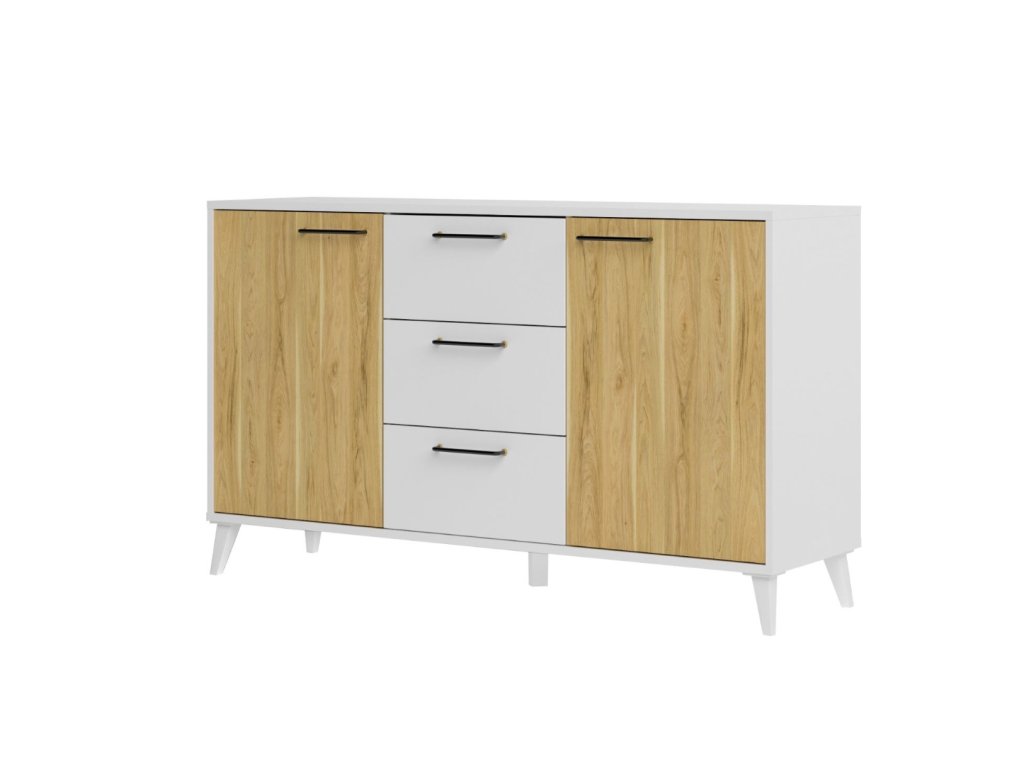 Komoda je dvojdverová. Disponuje tromi zásuvkami. Rozmery (š,v,h): 140 x 85 x 42 cm.