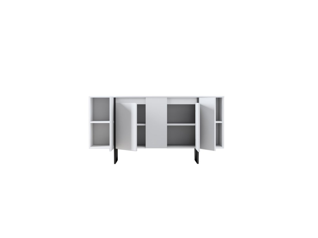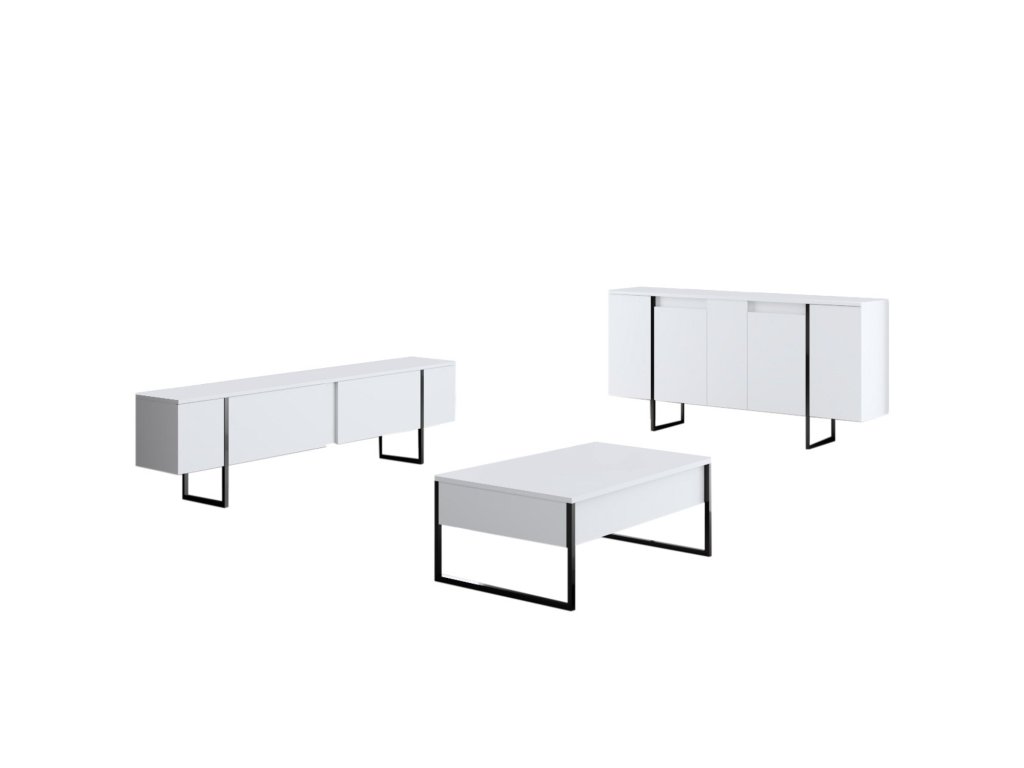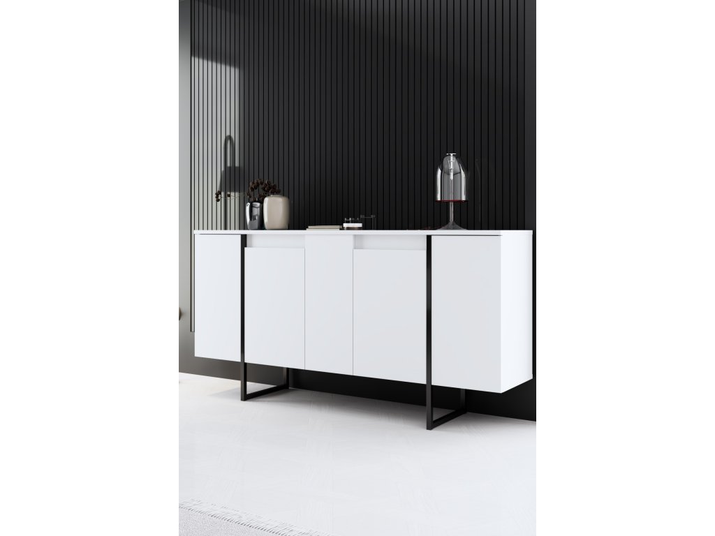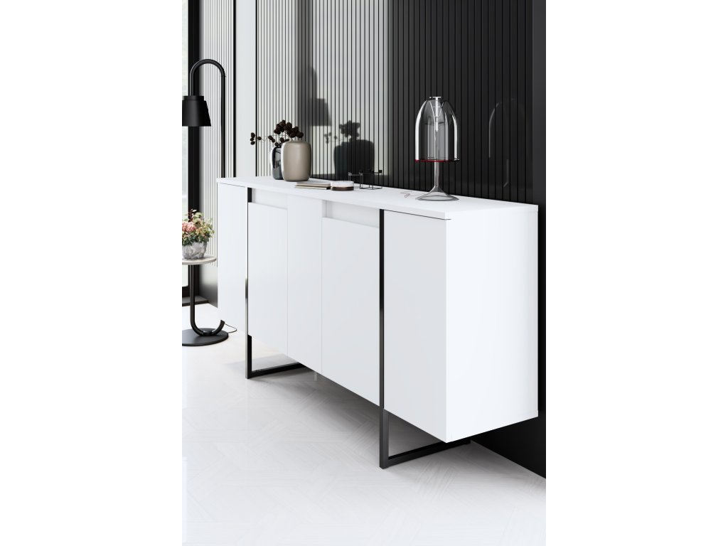 Premeňte svoju obývaciu izbu alebo chodbu na štýlové útočisko s komodou. Jej minimalistický dizajn a čisté línie vytvárajú atmosféru sofistikovanosti a elegancie. Kombinácia bielej a čiernej farby dodáva nádych kontrastu, vďaka čomu je všestranným kusom nábytku, ktorý sa bez problémov hodí do akéhokoľvek existujúceho interiéru. Priestranná horná plocha poskytuje ideálne miesto na vystavenie vašich obľúbených dekoračných predmetov alebo rodinných fotografií. Kovové nohy nielen dodávajú nádych industriálneho šarmu, ale taktiež zaisťujú stabilitu a oporu.