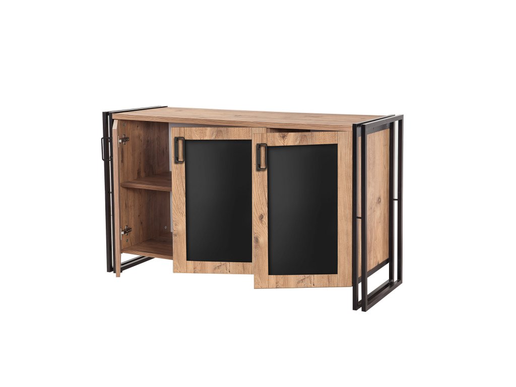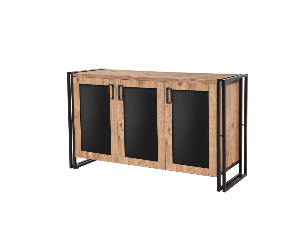 Komoda KAI je štýlovým a praktickým doplnkom do vašej obývacej izby. S moderným industriálnym dizajnom, kombináciou borovicového dekoru a čiernych kovových prvkov, prináša do interiéru nadčasový vzhľad a funkčnosť.