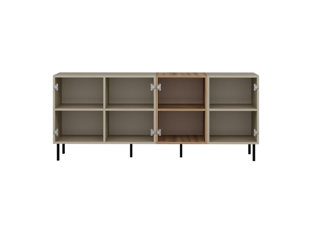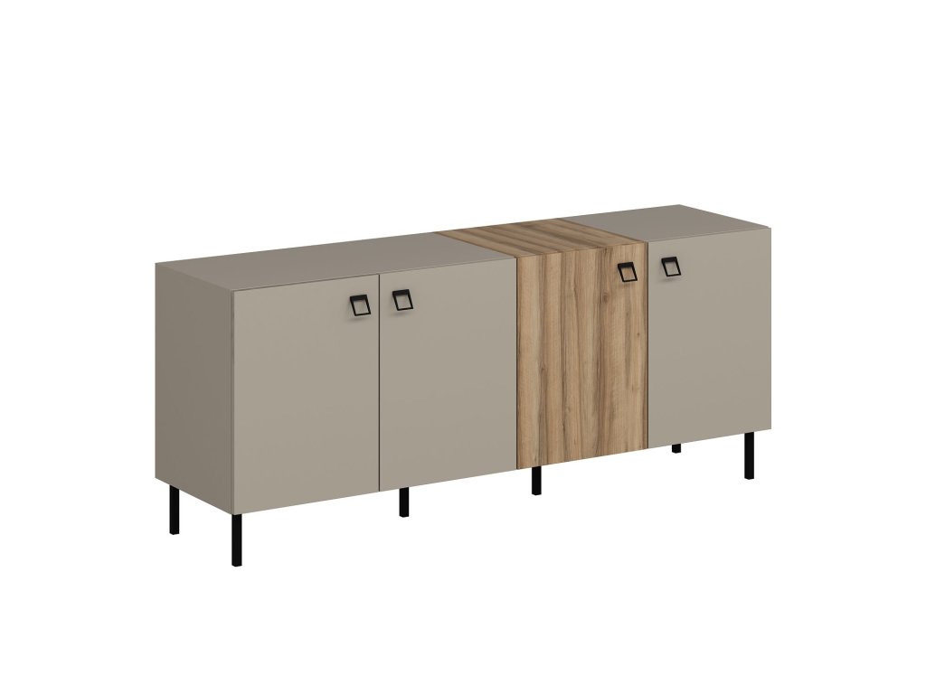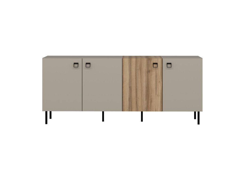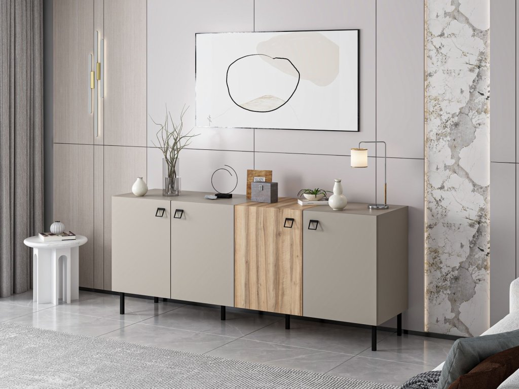 Komoda LUCY v modernej farbe pieskovca je ideálnym riešením pre tých, ktorí hľadajú elegantný úložný priestor do svojej obývacej izby. Široká konštrukcia a štyri plné dvierka poskytujú dostatok priestoru na organizáciu vecí, zatiaľ čo jej minimalistický dizajn dokonale zapadne do každého interiéru.