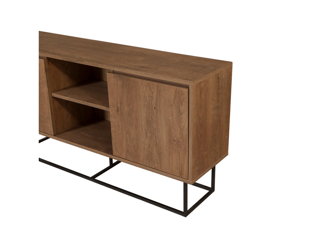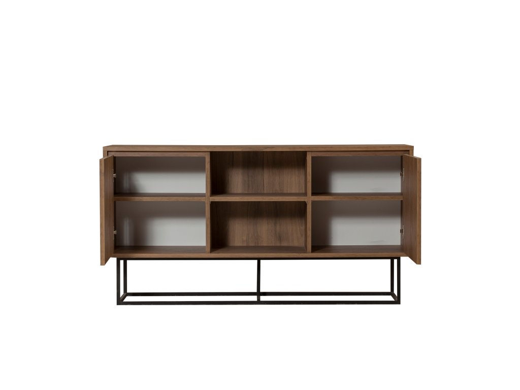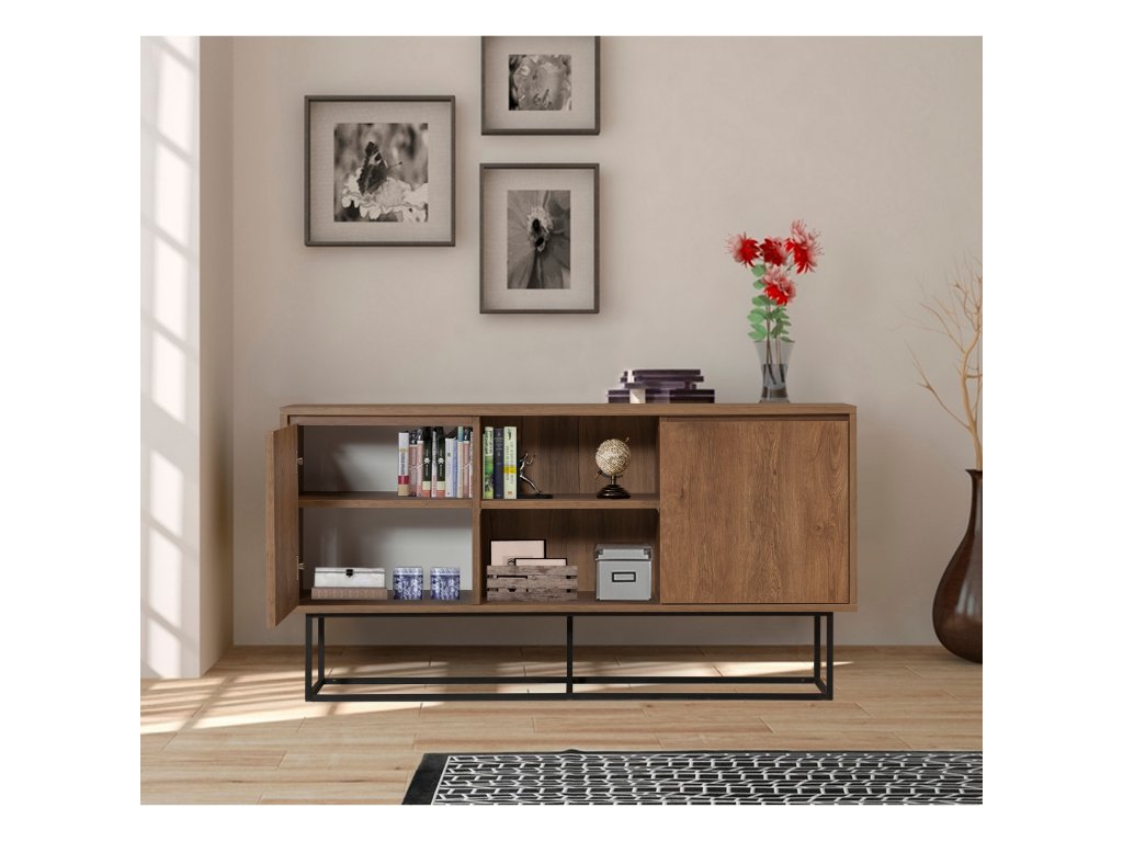 Komoda SUSSY je ideálnou voľbou pre milovníkov moderného industriálneho štýlu. Jej dizajn v kombinácii dekoru orecha a čiernych prvkov prinesie do vašej obývačky šmrnc a zároveň poskytne praktické úložné priestory.
