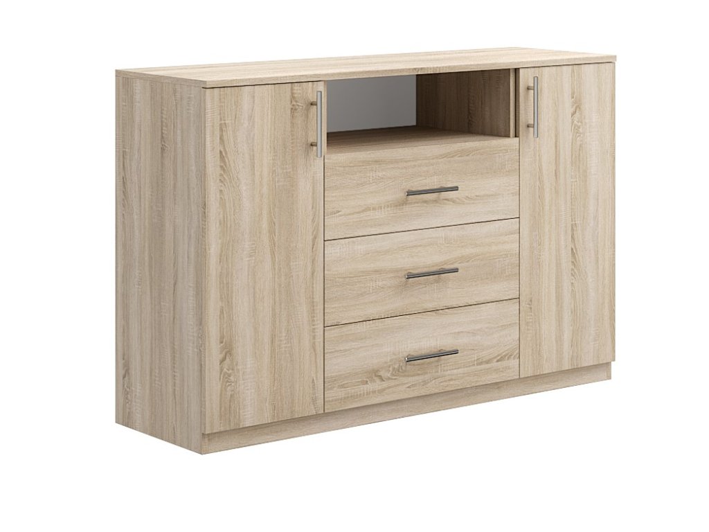 Moderná komoda VENA vo viacerých farebných prevedeniach poteší praktickým riešením, vďaka ktorému získate dostatok priestoru na uloženie vašich vecí. Je dvojdverová, má tri zásuvky, nad ktorými je odkladacia polica. Je vyrobená z kvalitnej 16 mm hrubej LTD dosky. Úchyty sú plastové.