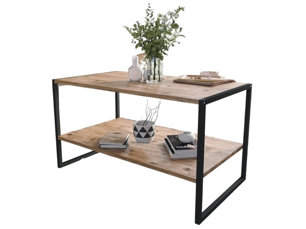 Konferenčný stolík 50*90 DUREN, borovica/čierna