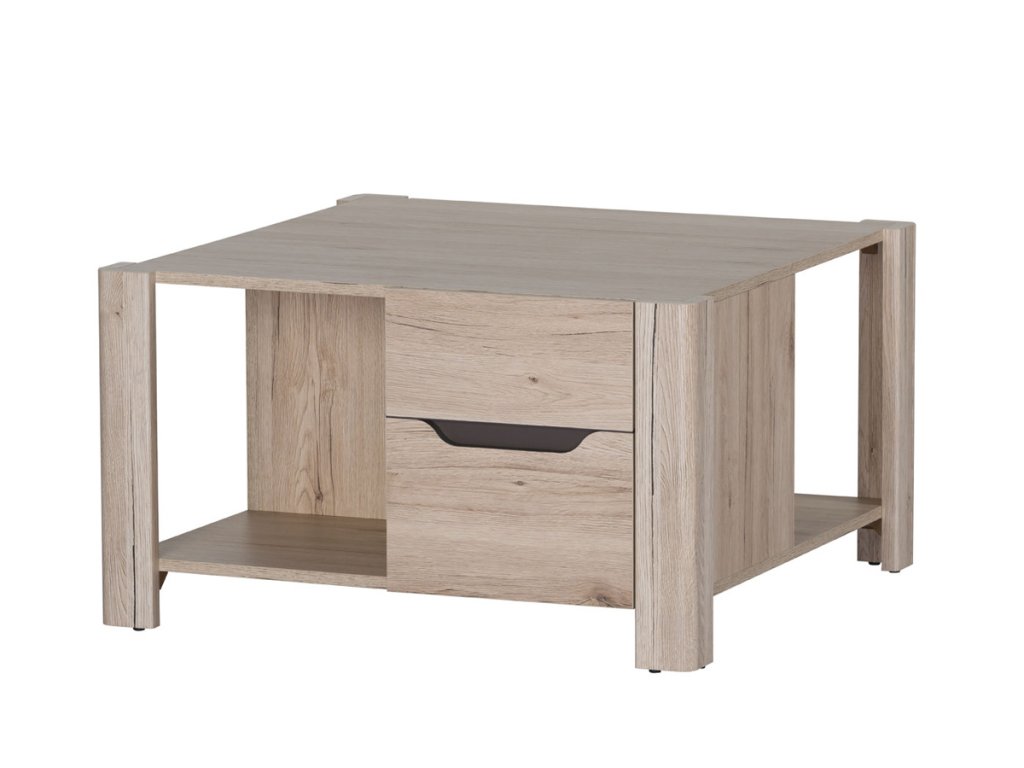 Konferenčný stolík je štvorcového tvaru. Disponuje dvomi praktickými zásuvkami a otvoreným úložným priestorom.