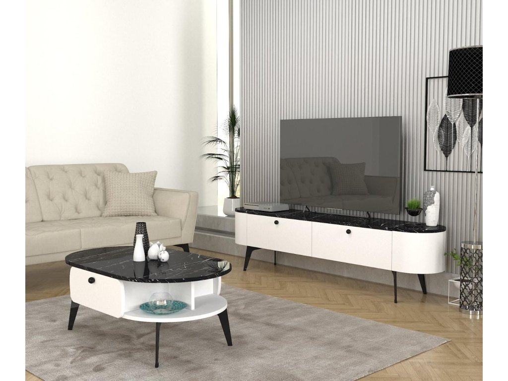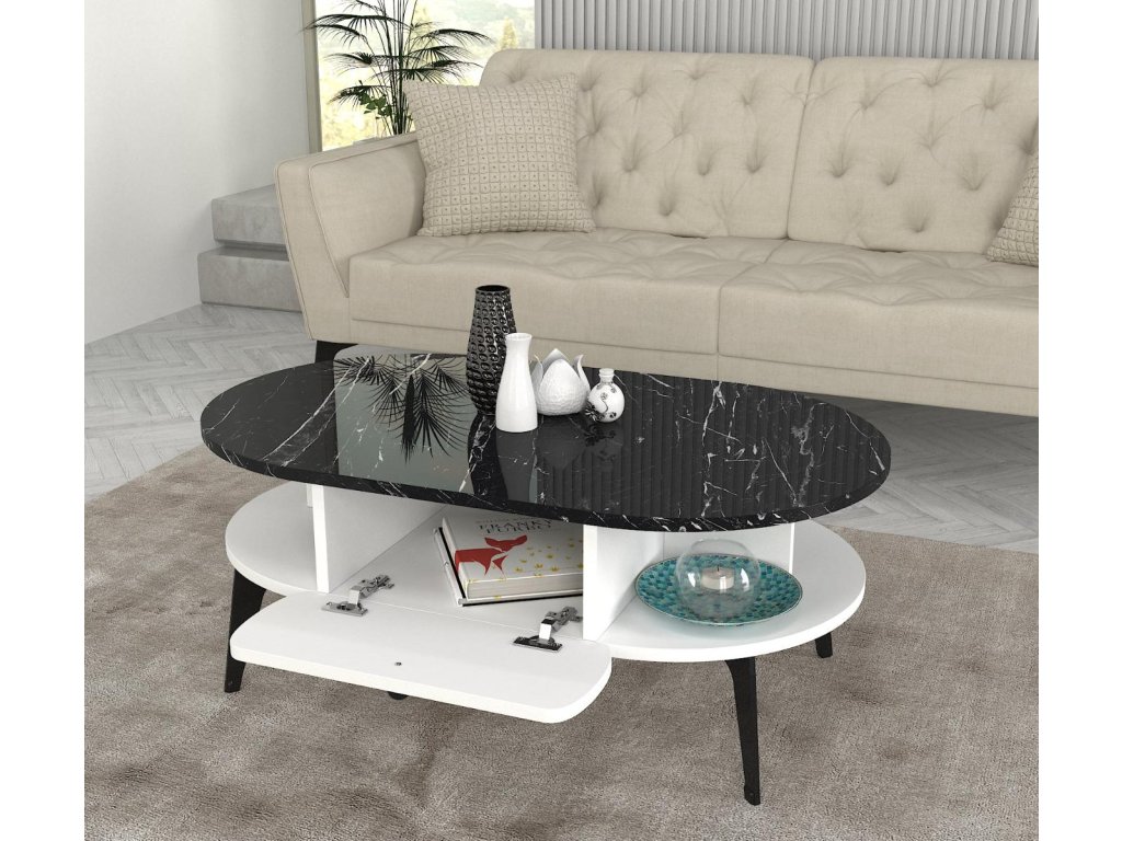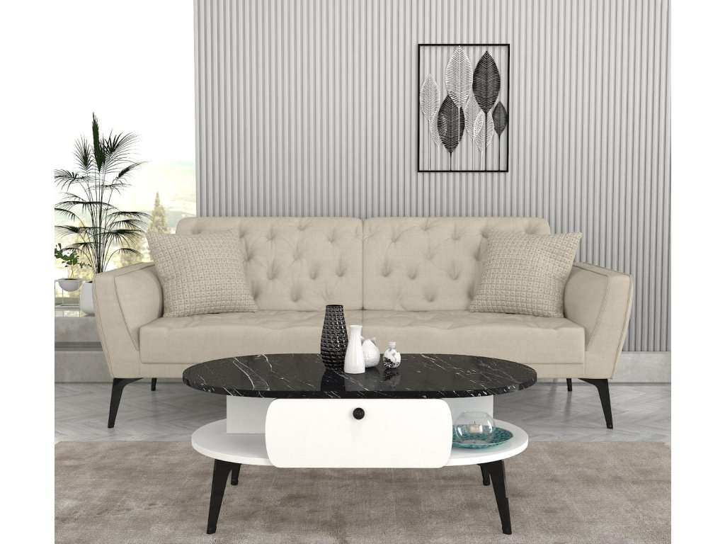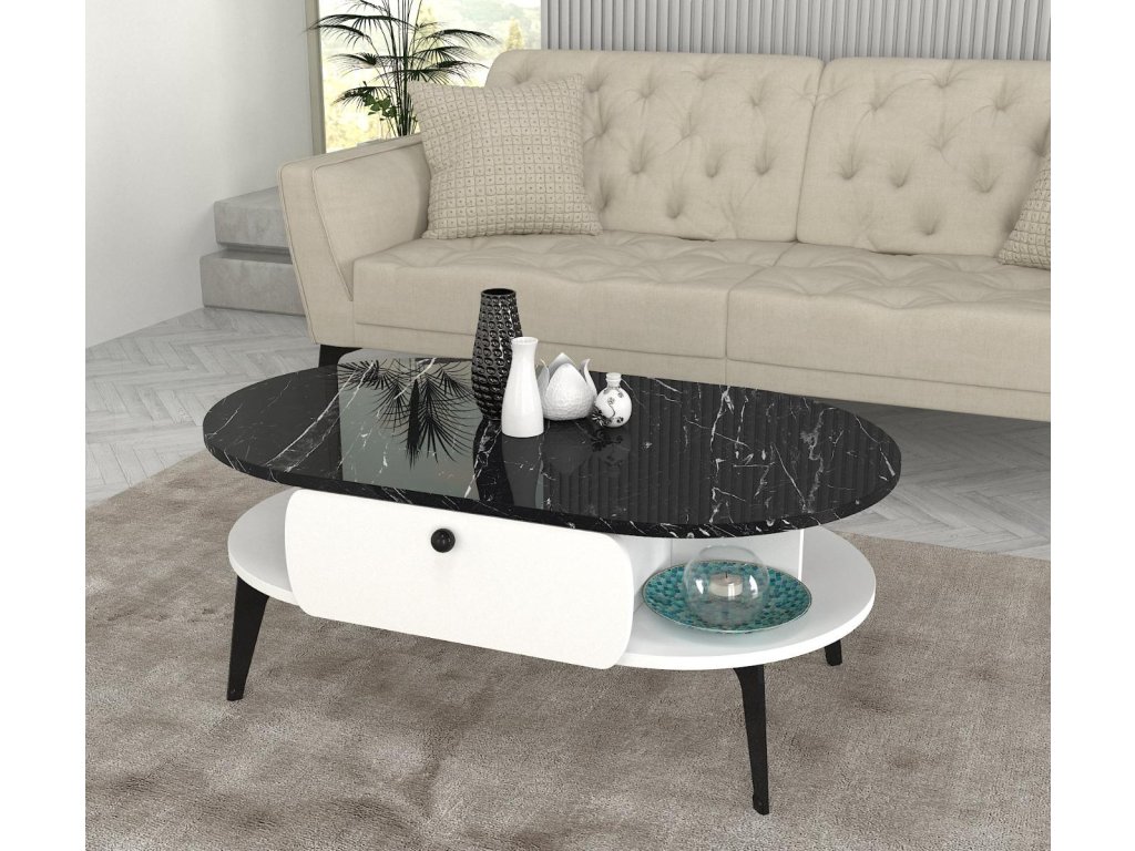 Konferenčný stolík EGYPT, biela/čierny mramor