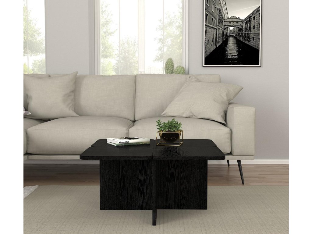 Konferenčný stolík ELZA je vyrobený z kvalitného materiálu LTD s hrúbkou 18 mm, čo zaručuje jeho pevnosť a dlhú životnosť. Elegantná čierna farba dodáva vašej obývačke moderný a sofistikovaný vzhľad. Štvorcový tvar stolíka poskytuje dostatok priestoru pre všetky vaše potreby, či už ide o odkladanie nápojov, kníh alebo dekorácií.