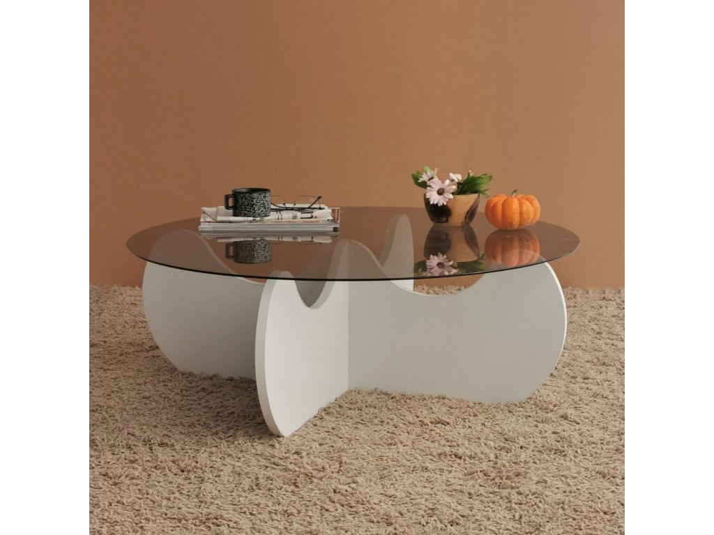 Konferenčný stolík FROSTY vyniká svojím okrúhlym dizajnom a čisto bielym prevedením, ktoré dodá vašej obývacej izbe moderný a vzdušný vzhľad. Je ideálnym doplnkom do interiéru, ktorý kombinuje štýl a funkčnosť.