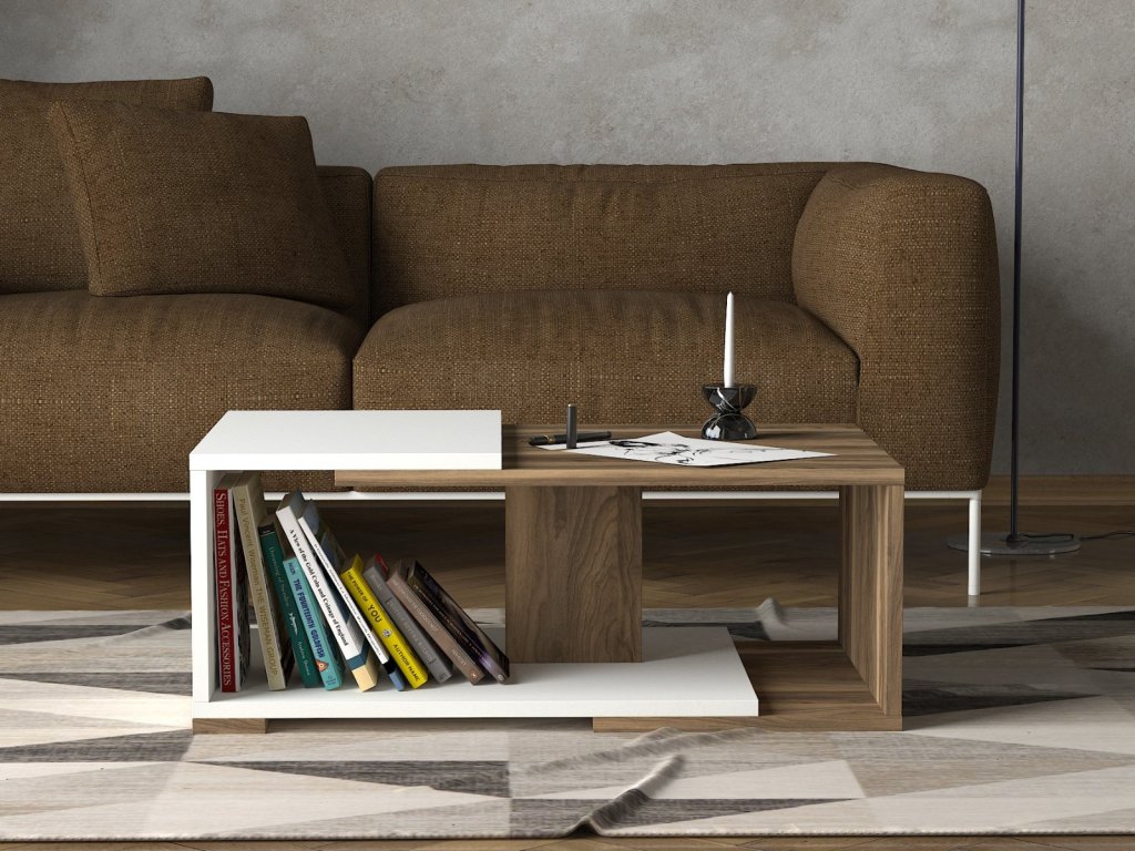 Konferenčný stolík MODERNO vás zaujme svojím prevedením v kombinácii farieb biela + drevodekor, ktoré pritiahne pozornosť každého návštevníka. Vďaka otvorenej polici poskytuje dostatok úložného priestoru na odloženie kníh, časopisov a ostatných drobností, ktoré chcete mať vždy po ruke.