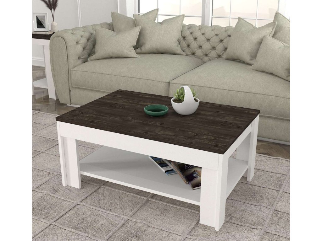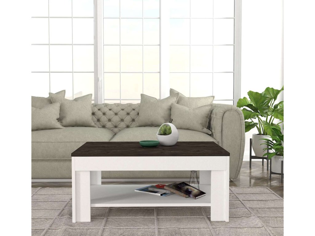 Predstavujeme CANCEL, konferenčný stolík, ktorý prináša do vašej obývačky moderný a elegantný vzhľad. Tento štýlový nábytok v kombinácii bielej a tmavo hnedej farby je navrhnutý tak, aby poskytoval praktické a estetické riešenie pre vaše potreby.