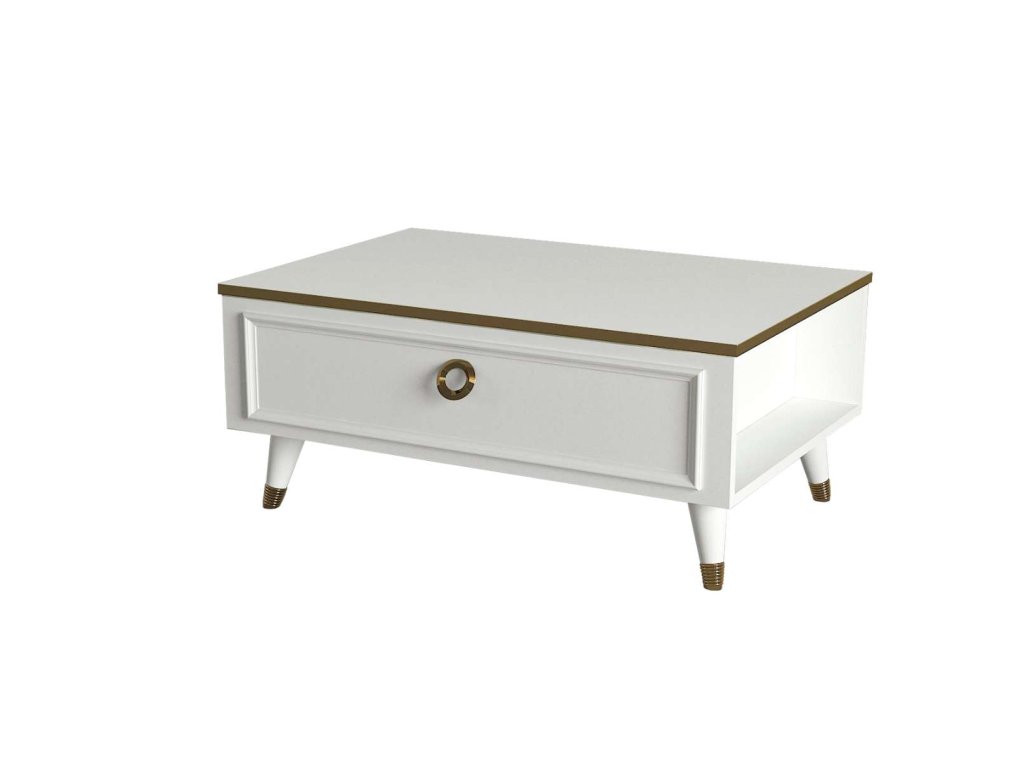 Konferenčný stolík KORNELIA je ideálnou voľbou pre tých, ktorí hľadajú moderný a funkčný nábytok. Jeho čisto biela farba a minimalistický dizajn prináša do vášho domova sviežosť a moderný štýl, zatiaľ čo poskytujú dostatok úložného priestoru pre všetky vaše potreby.