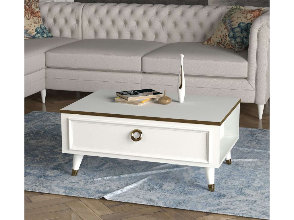 Predstavujeme KORNELIA, konferenčný stolík, ktorý prináša do vašej obývačky eleganciu a funkčnosť. Tento štýlový nábytok v čisto bielej farbe je navrhnutý tak, aby poskytoval praktické a estetické riešenia pre vaše potreby.